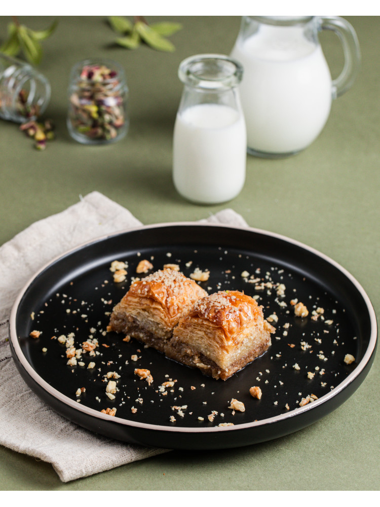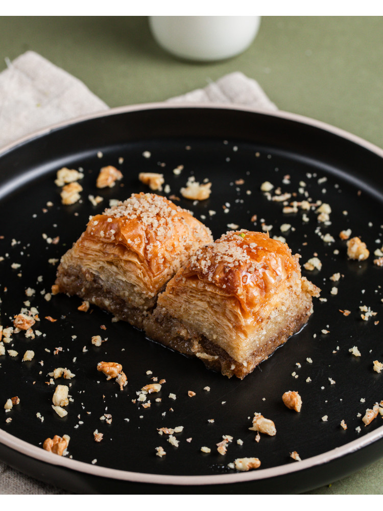 Klassik Qozlu — xırt-xırt un qatları arasında zəngin qoz və şirin bal ilə hazırlanmış ənənəvi şirniyyat ləzzəti.